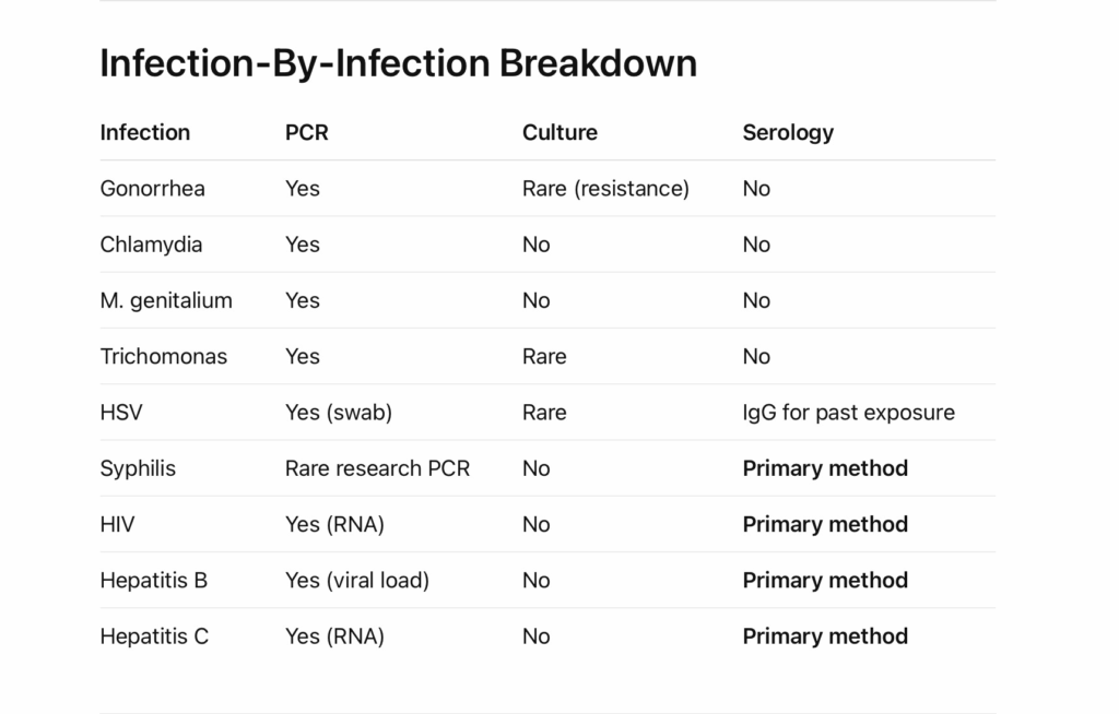 PCR, Culture, and Serology — What They Are, How They Work, and Which STIs Use Which Test